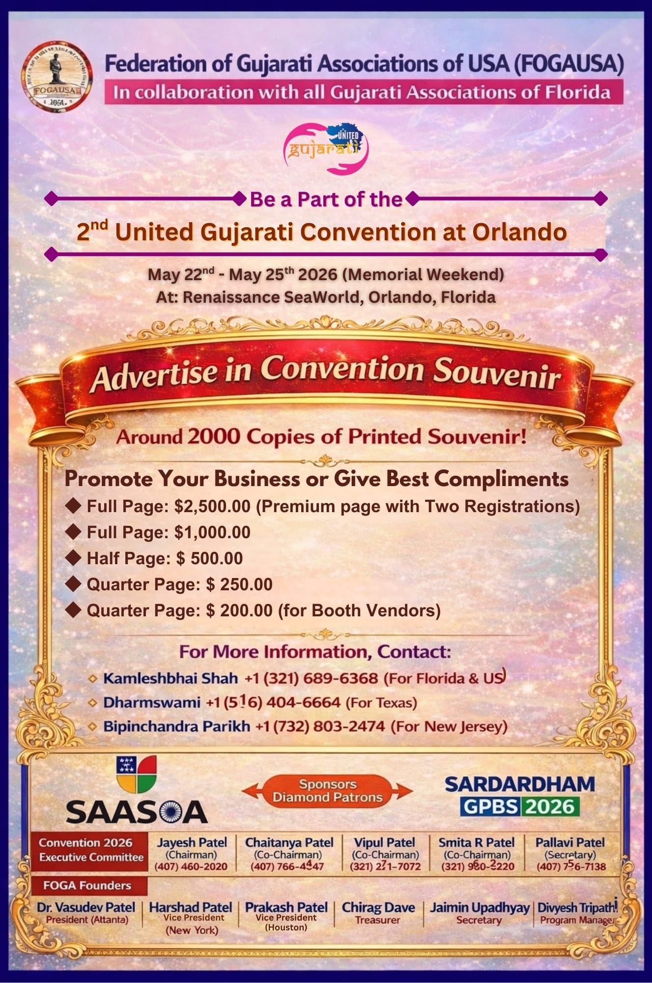 The United Gujarati Convention 2026 will be held at the world-class Renaissance Orlando at SeaWorld®, located in the heart of Orlando, Florida.